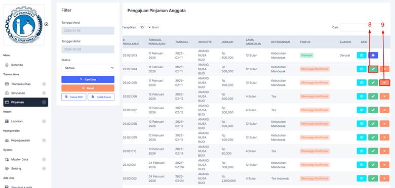 9. Pilih Tombol [Disetujui] apabila pengajuan di setujui.
