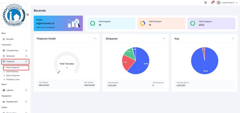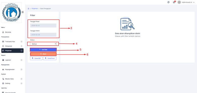 1. Klik menu [Pinjaman] -> [Data Pengajuan].
