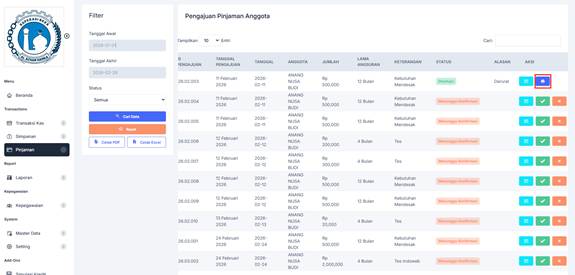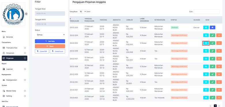 10. Apabila pengajuan Disetujui maka bisa di cetak dengan Klik tombol [Cetak].