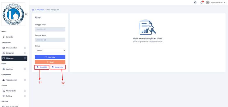 11. Apabila ingin mencetak file Pdf klik [Cetak Pdf].