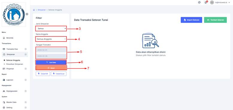 1. Klik menu [Simpanan] -> [Setoran Anggota].